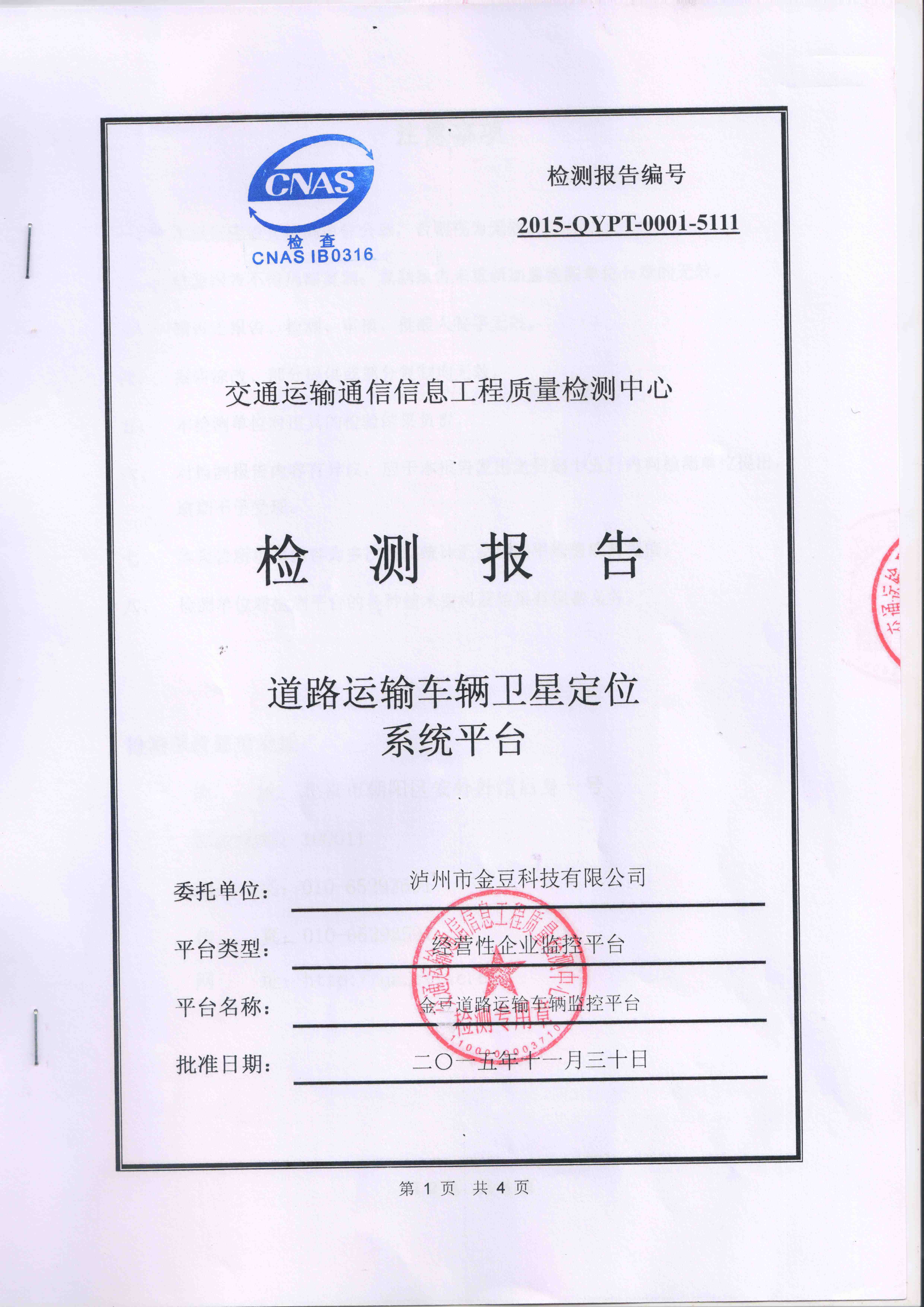 熱烈慶祝金豆科技公司GPS平臺(tái)通過中華人民共和國(guó)交通部...